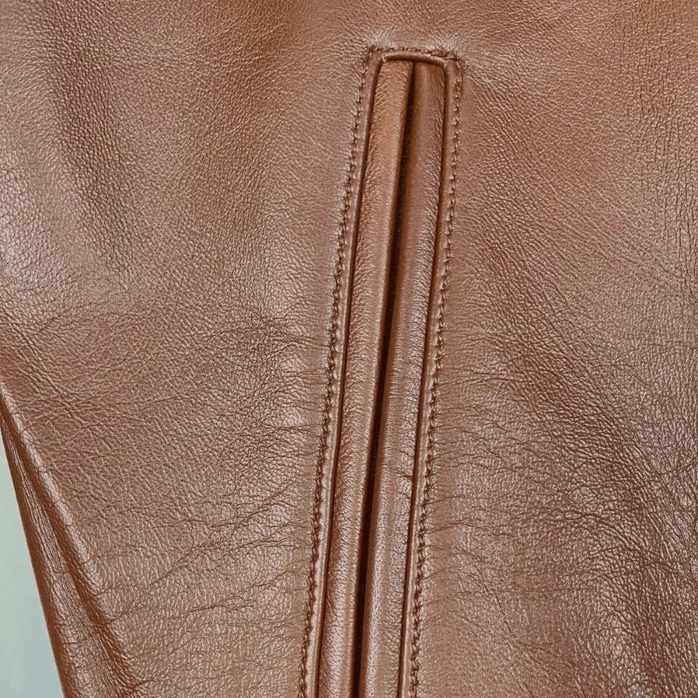 O casaco em pele Peter é uma peça icónica que combina o charme da cor castanha com um design contemporâneo, detalhes em malha cinzenta nos punhos e gola e bolsos frontais com fecho. Perfeito para quem procura estilo, conforto e durabilidade em um único item.
